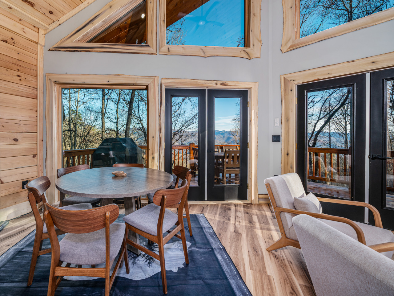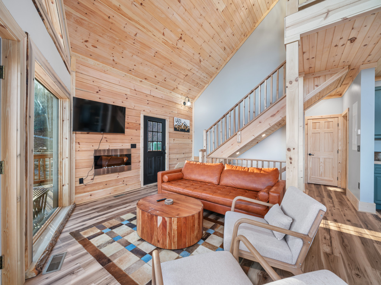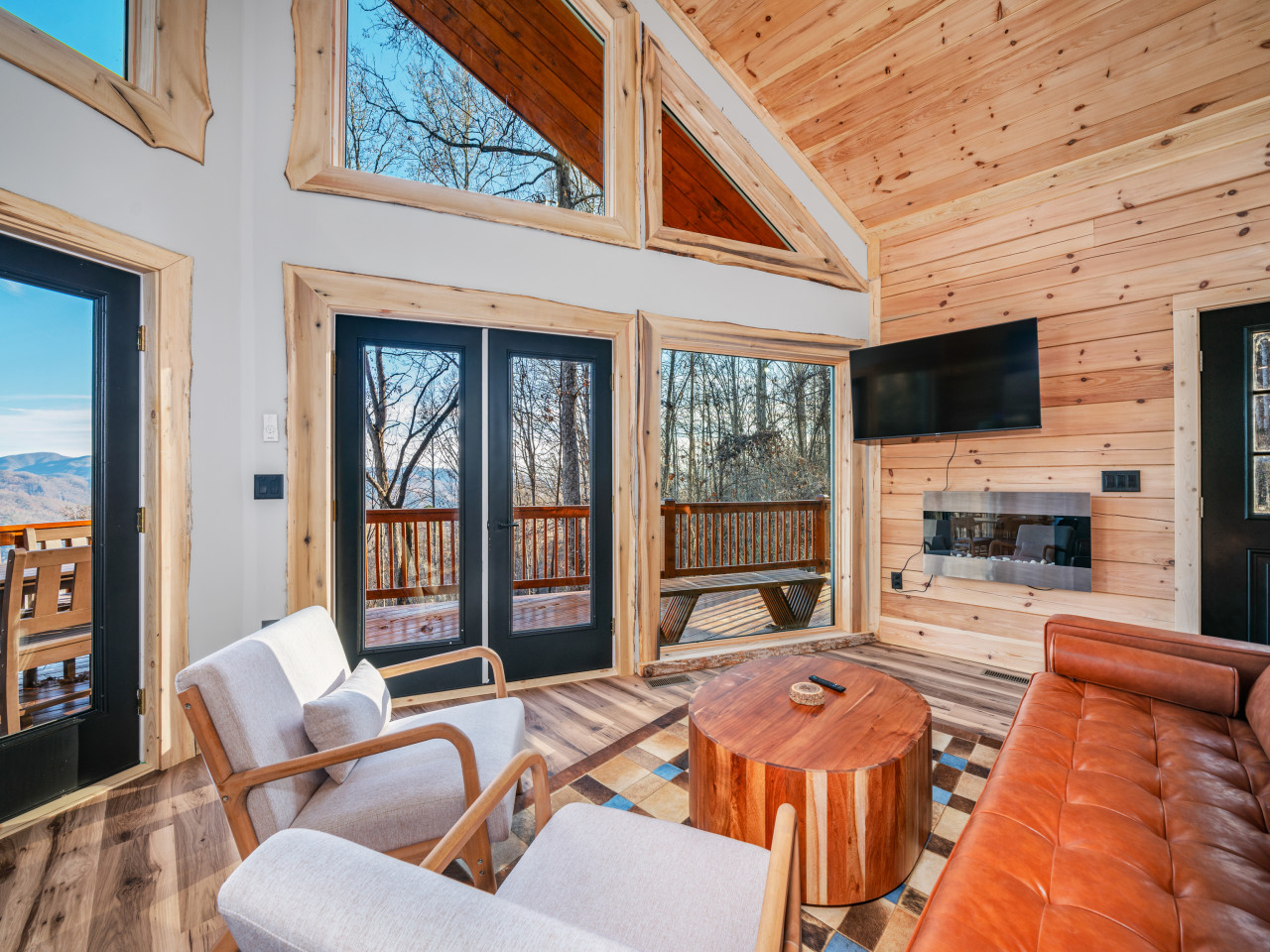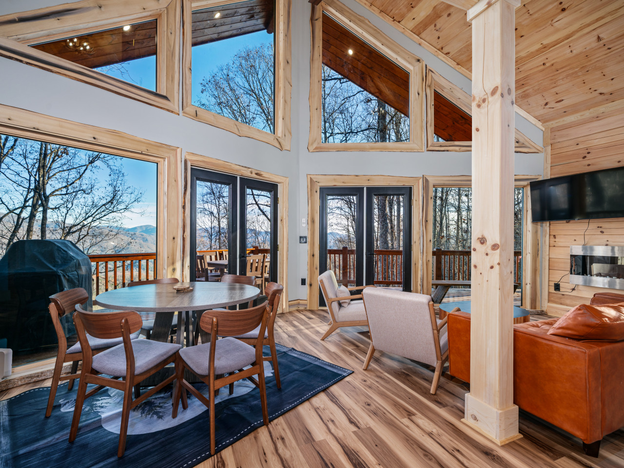 / nightWelcome to our brand-new cabin, thoughtfully designed for relaxation and adventure. Inside, you'll find three cozy sleeping areas: a queen bedroom on the main floor, a king-size suite downstairs, and a loft with a queen daybed and a full pullout. The main floor boasts a fully equipped kitchen, dining table, comfy sofa, large TV, and a bathroom with a custom walk-in shower. Downstairs, enjoy a second living room with a large couch, TV, games, and a full-size washer and dryer. Step outside to breathtaking views from two decks. The upper deck features an outdoor kitchen table, propane grill, and stunning valley views, while the lower deck invites you to unwind in the hot tub or lounge in additional seating. For EV travelers, we’ve added a convenient 220 outlet next to the cabin for a nominal fee. Perfect for families, couples, or friends, this retreat offers everything you need for a relaxing getaway above the clouds.