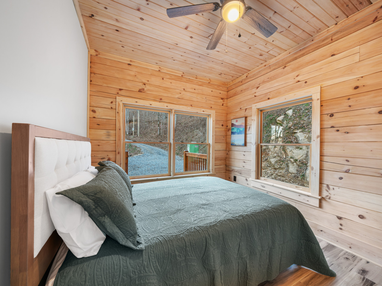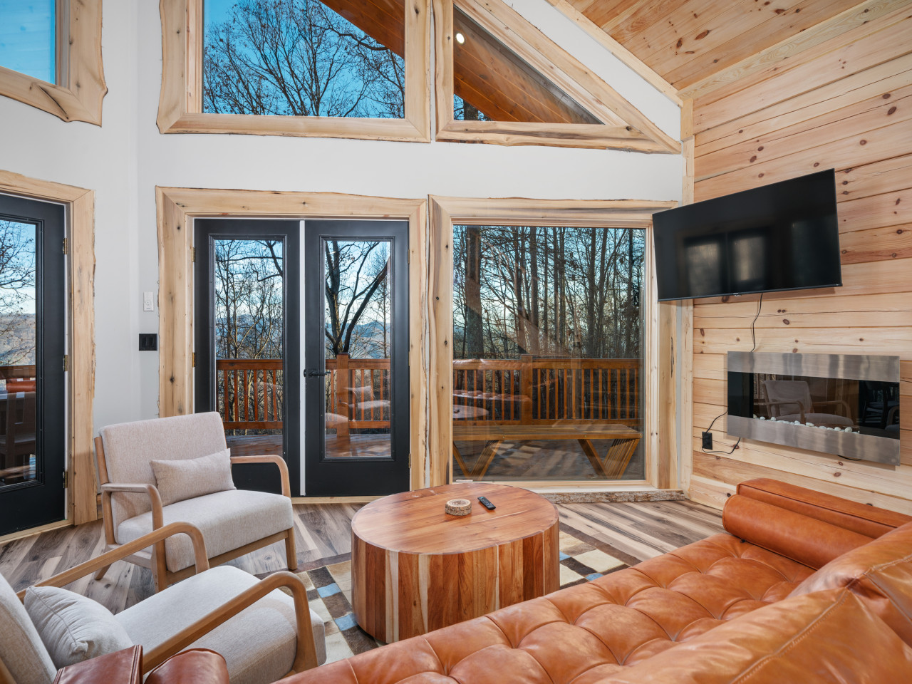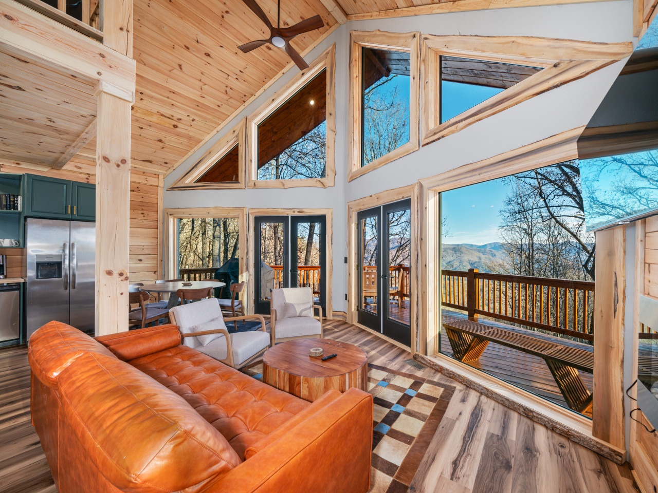 / nightWelcome to our brand-new cabin, thoughtfully designed for relaxation and adventure. Inside, you'll find three cozy sleeping areas: a queen bedroom on the main floor, a king-size suite downstairs, and a loft with a queen daybed and a full pullout. The main floor boasts a fully equipped kitchen, dining table, comfy sofa, large TV, and a bathroom with a custom walk-in shower. Downstairs, enjoy a second living room with a large couch, TV, games, and a full-size washer and dryer. Step outside to breathtaking views from two decks. The upper deck features an outdoor kitchen table, propane grill, and stunning valley views, while the lower deck invites you to unwind in the hot tub or lounge in additional seating. For EV travelers, we’ve added a convenient 220 outlet next to the cabin for a nominal fee. Perfect for families, couples, or friends, this retreat offers everything you need for a relaxing getaway above the clouds.