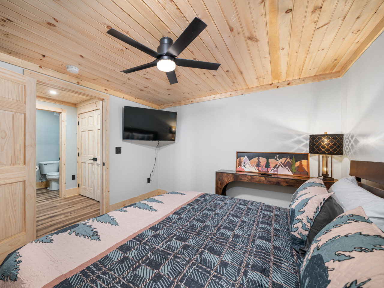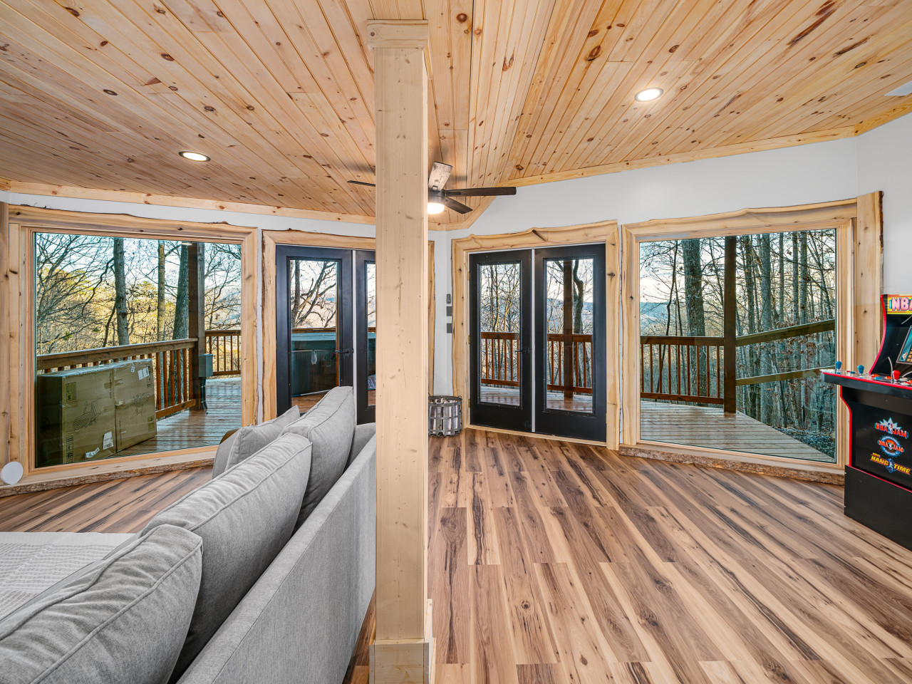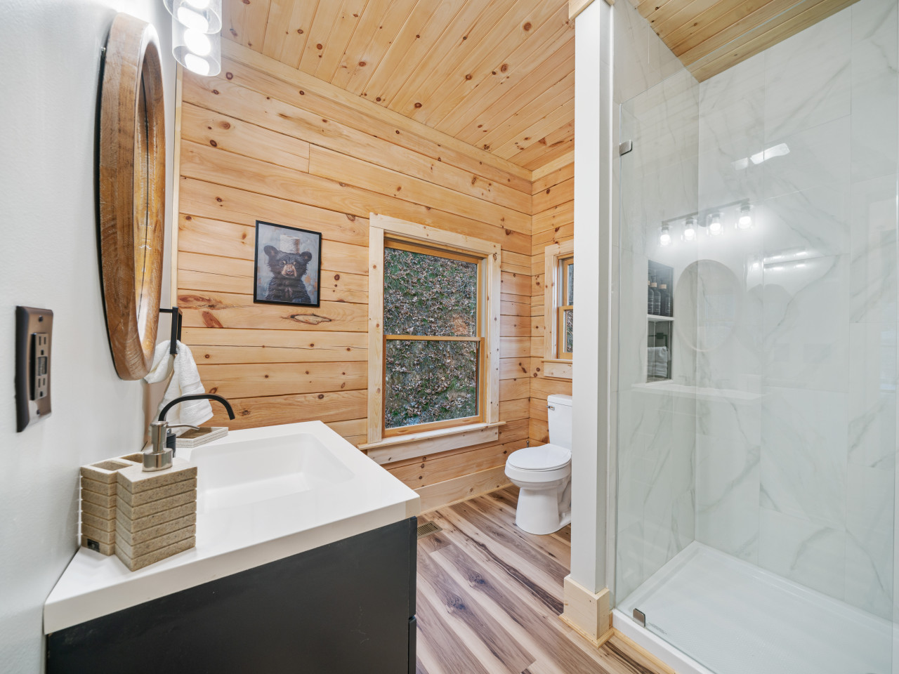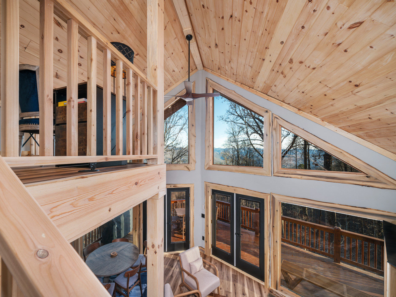 / nightWelcome to our brand-new cabin, thoughtfully designed for relaxation and adventure. Inside, you'll find three cozy sleeping areas: a queen bedroom on the main floor, a king-size suite downstairs, and a loft with a queen daybed and a full pullout. The main floor boasts a fully equipped kitchen, dining table, comfy sofa, large TV, and a bathroom with a custom walk-in shower. Downstairs, enjoy a second living room with a large couch, TV, games, and a full-size washer and dryer. Step outside to breathtaking views from two decks. The upper deck features an outdoor kitchen table, propane grill, and stunning valley views, while the lower deck invites you to unwind in the hot tub or lounge in additional seating. For EV travelers, we’ve added a convenient 220 outlet next to the cabin for a nominal fee. Perfect for families, couples, or friends, this retreat offers everything you need for a relaxing getaway above the clouds.