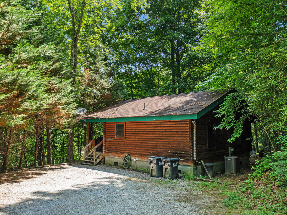 A private road leads to a two bedroom, cozy log cabin near Bryson City, NC.  Hot tub and fire pit outside for enjoying the evening.  Gas Weber grill for making dinner.  Rocking chairs on the front porch to breath in fresh mountain air while under cover. WiFi speeds around 40mbps.  Enjoy complimentary firewood, just be sure to bring your own tinder to get it going.