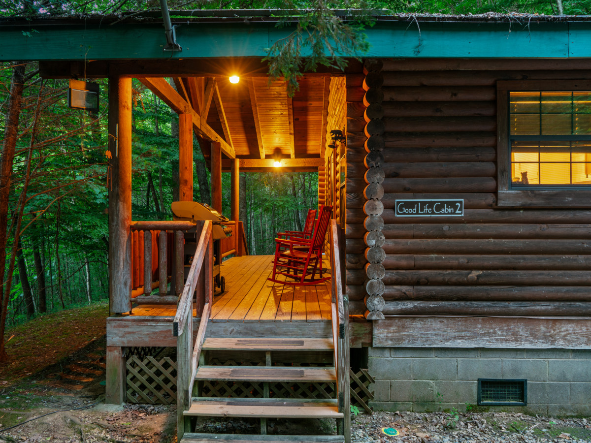 The hood life cabin is awesome! It’s in the middle of the woods. Very quiet and secluded with a creek, fire pit, and hot tub! Nothing too fancy, just the way we like it. I could sit on that front porch all day!