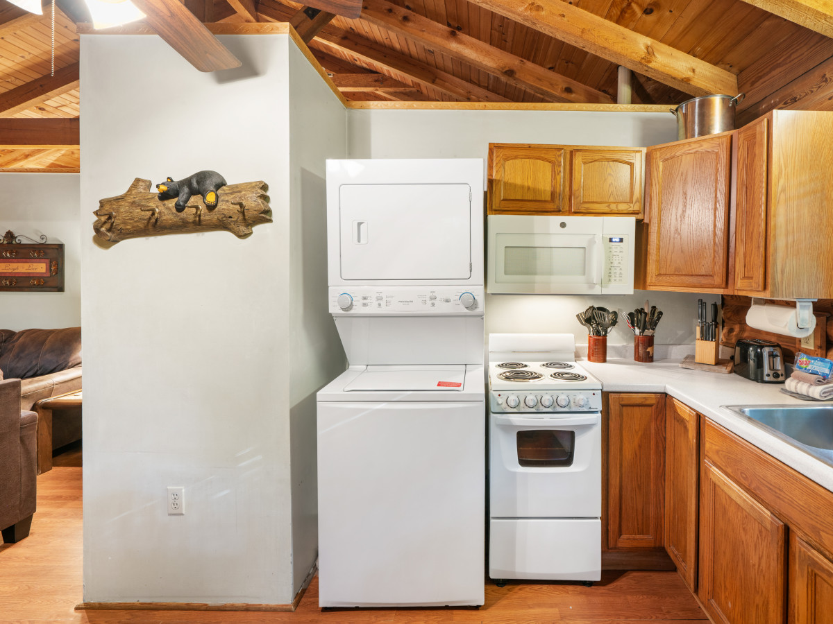 Guests have access to a private fire pit and private hot tub. We keep a stock of seasoned firewood for your enjoyment.  Outdoor gas grill is available for use. Washer and Dryer in the unit.