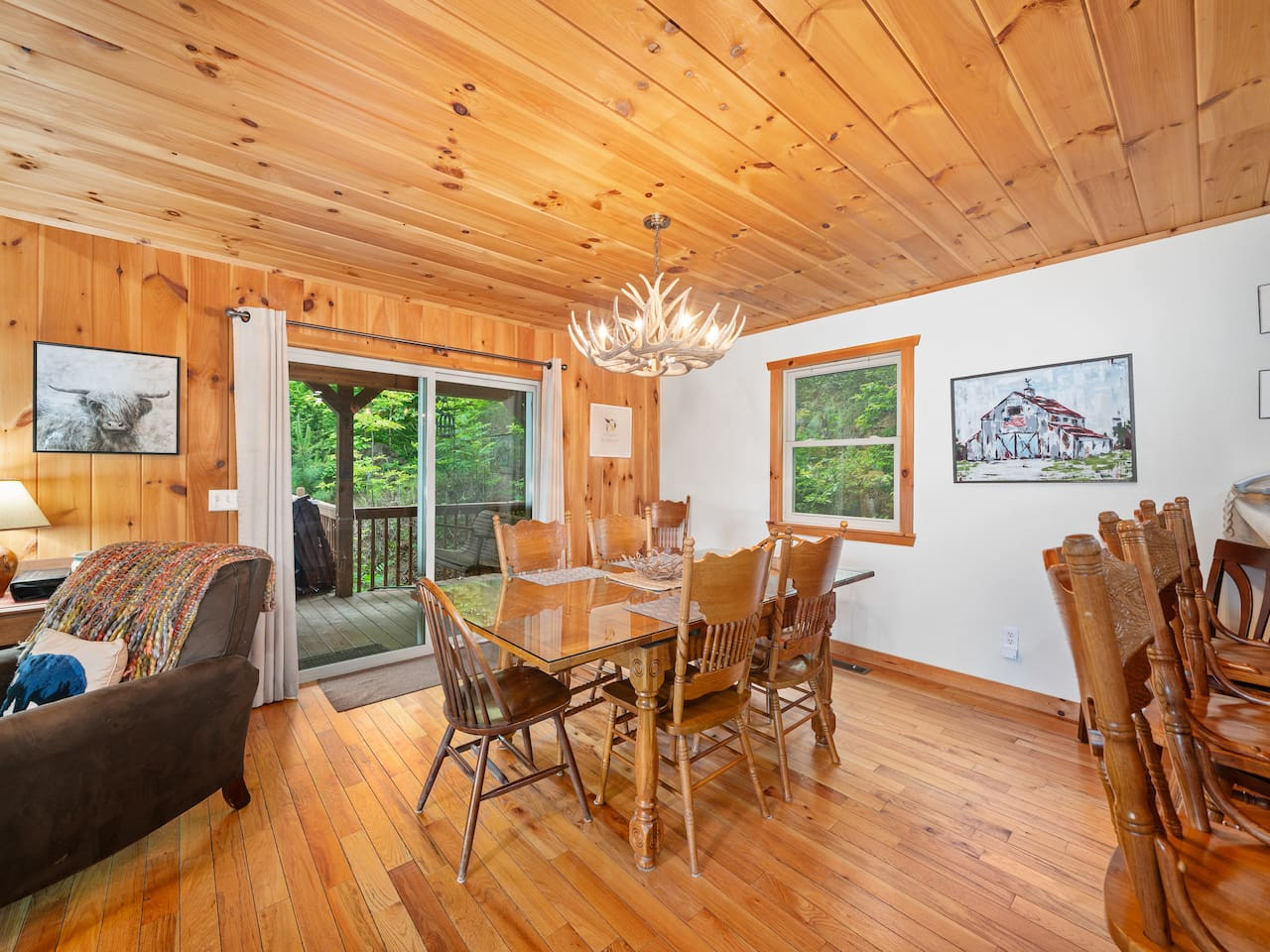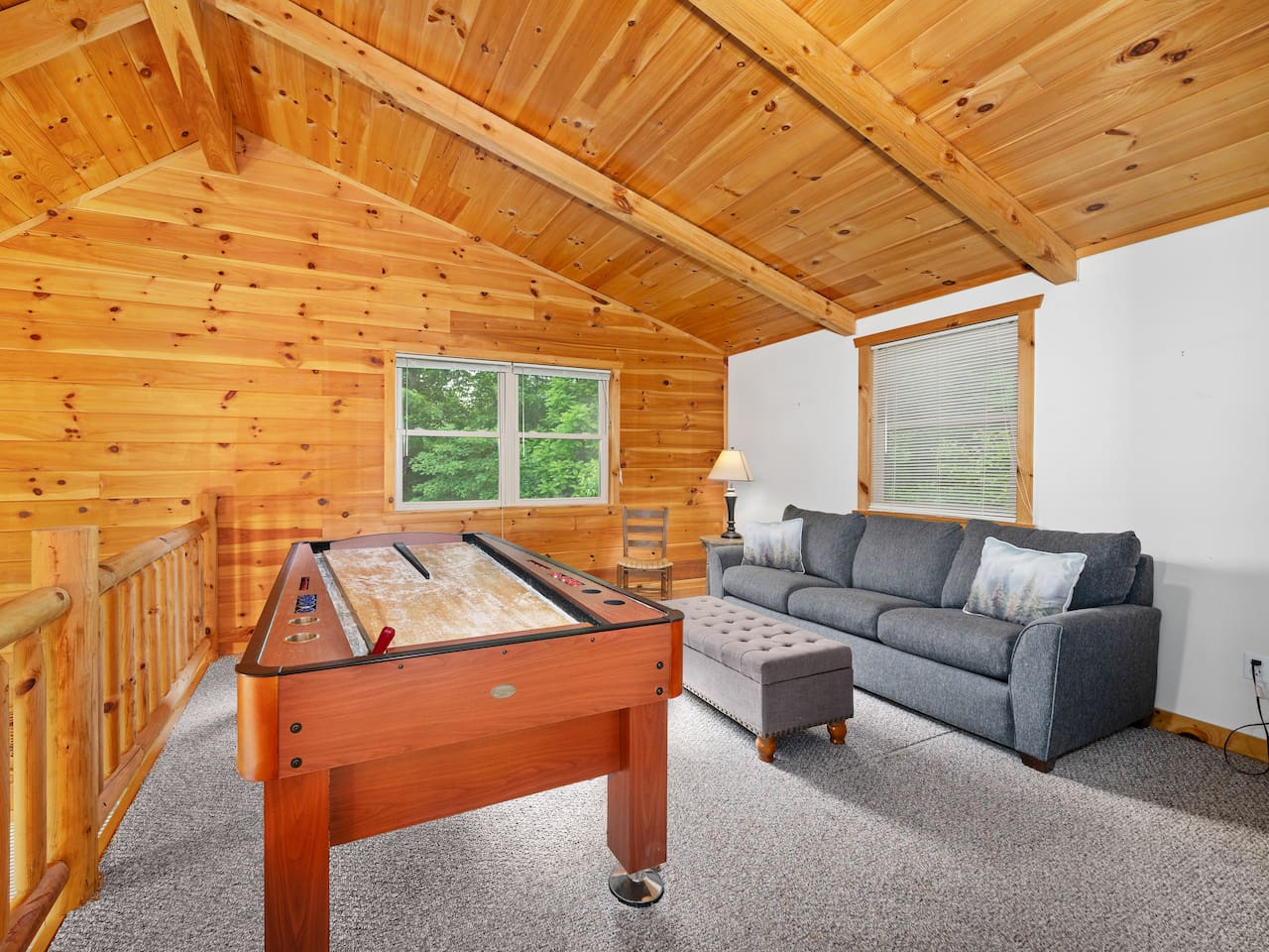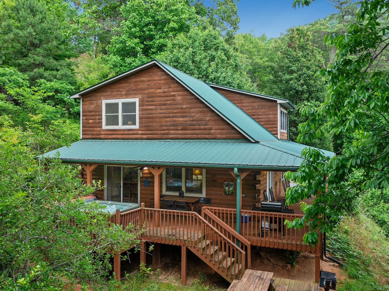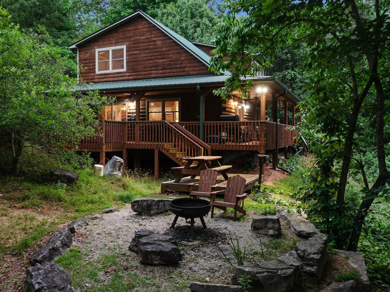 / nightExperience mountain charm at Mountain Aire Cabin near Bryson City. Minutes from top spots like the Smoky Mountains Railroad, Harrah’s Casino, whitewater rafting, and scenic trails. Relax in the hot tub, by the firepit, or on the wrap-around porch. Inside, enjoy vaulted ceilings, a fireplace, full kitchen, Foosball, A/C, and high-speed internet. With cozy bedrooms and modern comforts, it’s the perfect mix of adventure and relaxation.