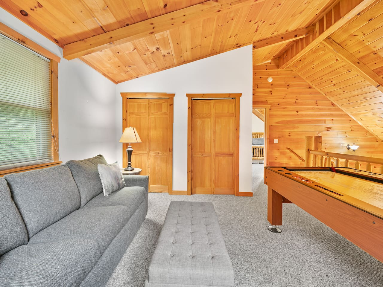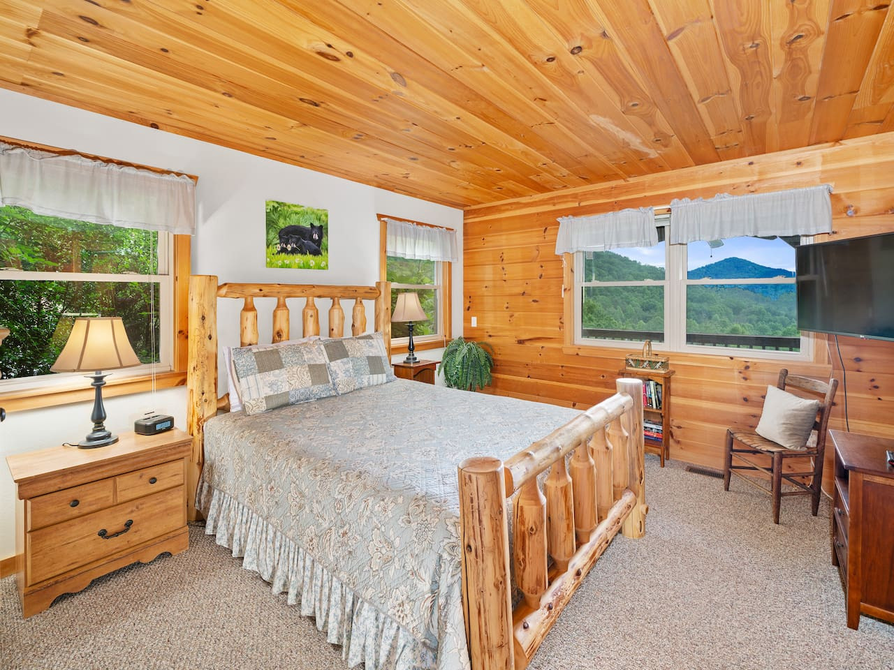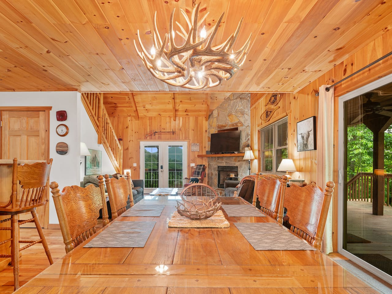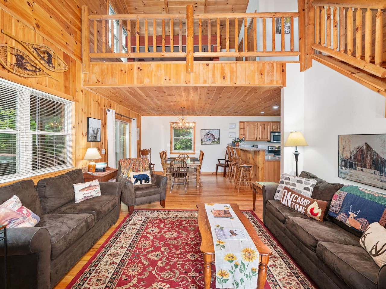 / nightExperience mountain charm at Mountain Aire Cabin near Bryson City. Minutes from top spots like the Smoky Mountains Railroad, Harrah’s Casino, whitewater rafting, and scenic trails. Relax in the hot tub, by the firepit, or on the wrap-around porch. Inside, enjoy vaulted ceilings, a fireplace, full kitchen, Foosball, A/C, and high-speed internet. With cozy bedrooms and modern comforts, it’s the perfect mix of adventure and relaxation.