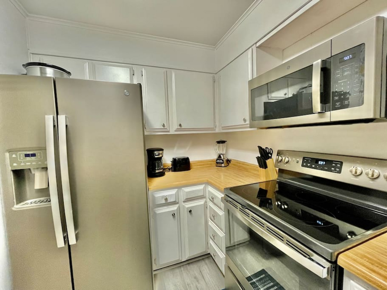 Beautiful place! Perfect view! Had everything you needed like a crockpot, casserole dishes and a blender! I’ll always have to carry that stuff along with me! That needs to be listed on the amenities if it is not. I may have overlooked it. Both mattresses slept phenomenal in the two rooms! The only thing I didn’t like was there was no elevator and the bed in the master is really high! I do have a bad hip, other than that I would have loved the height! Overall a great place! Very very quiet also!