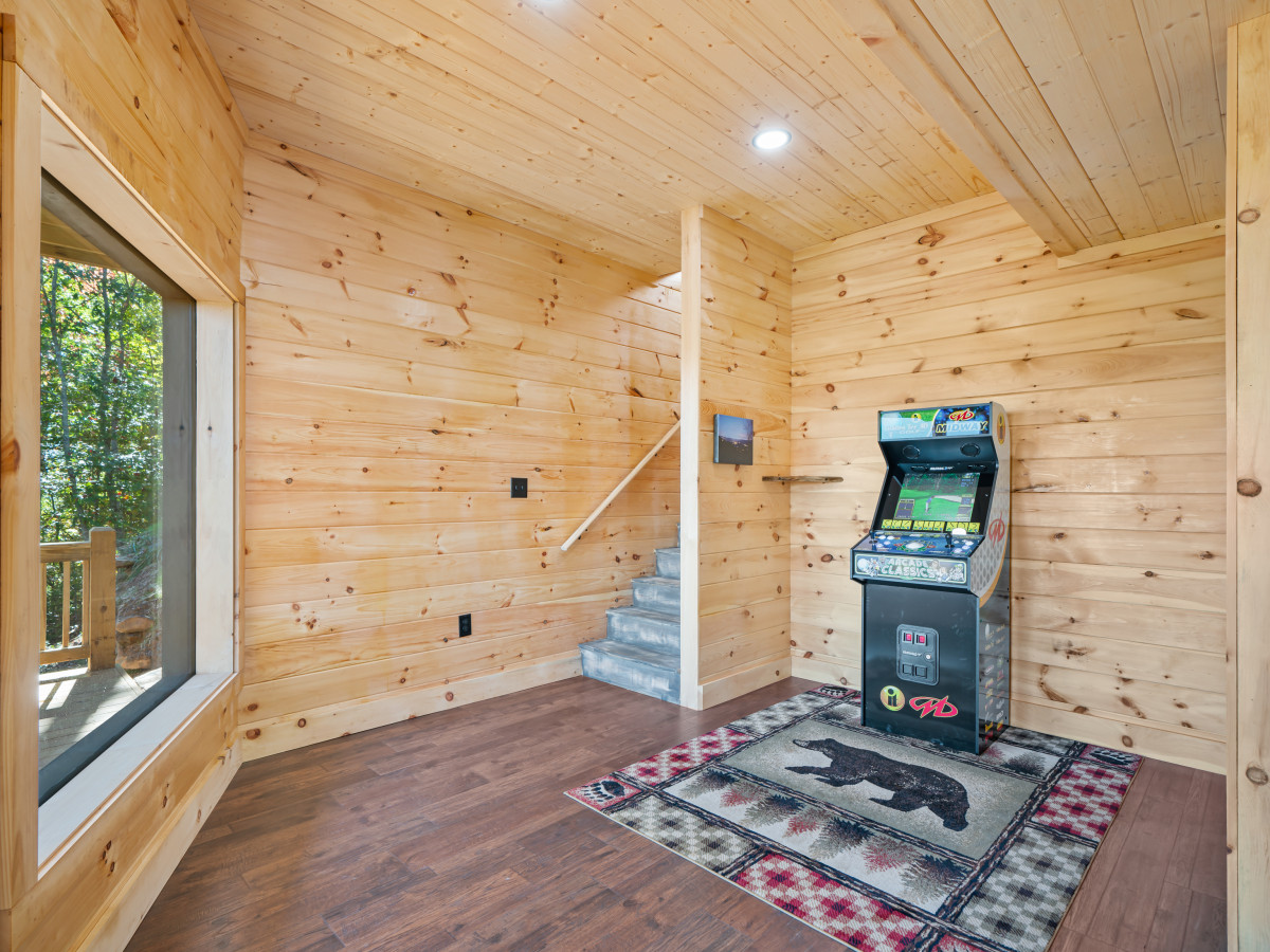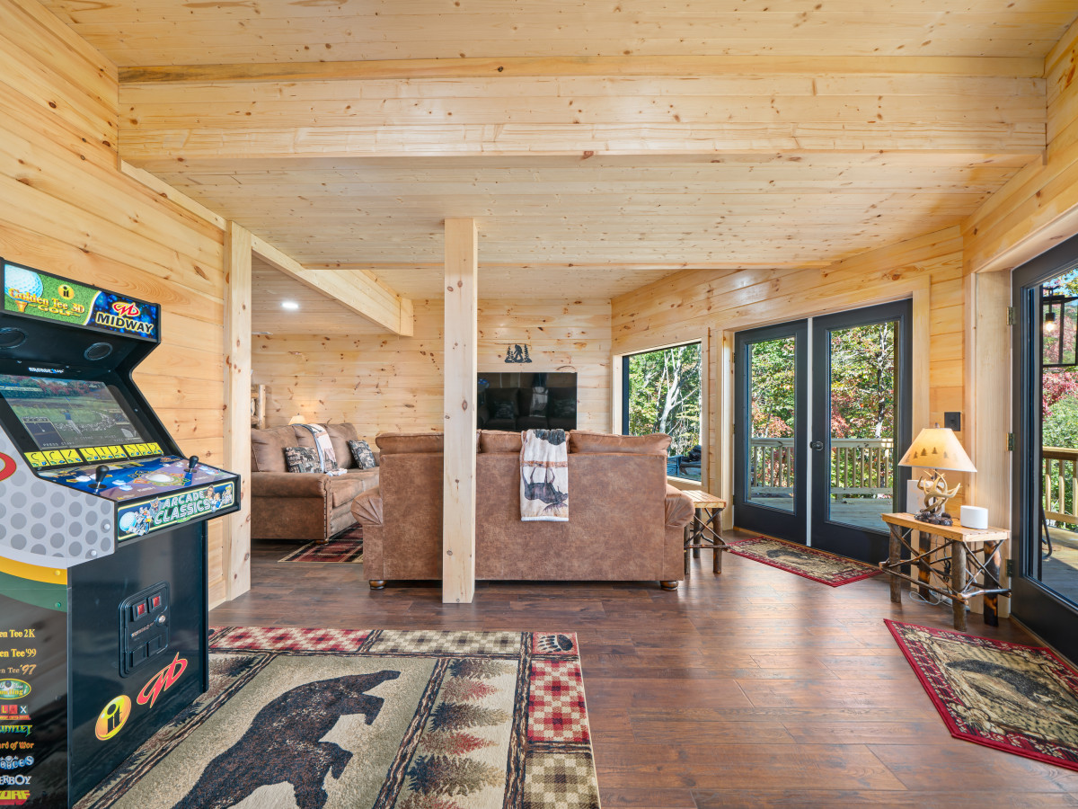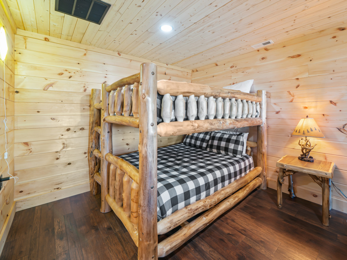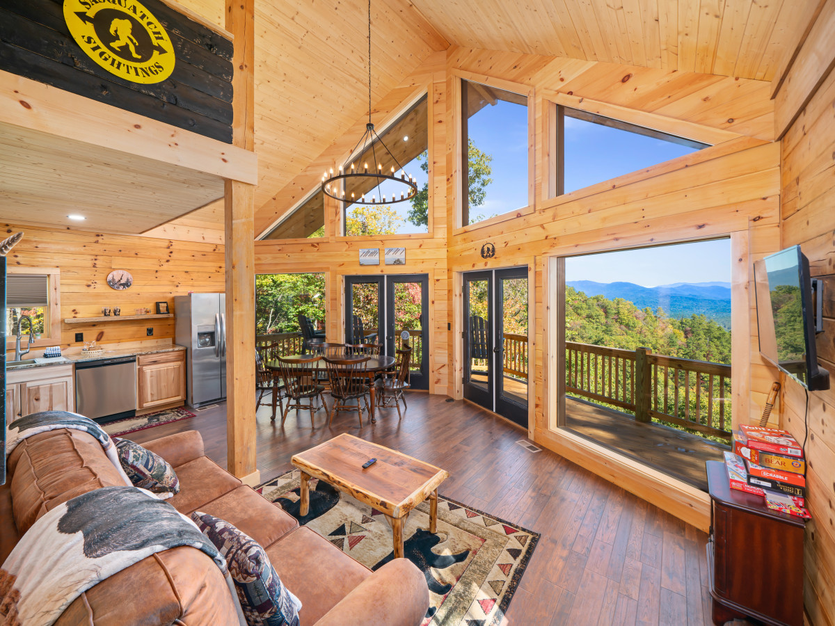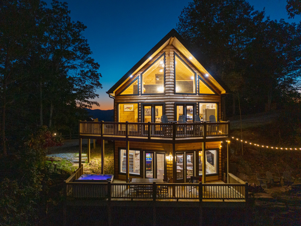 / nightWelcome to *Squatch Nest*, a one-of-a-kind cabin retreat tucked away in the heart of the North Carolina mountains, offering stunning, long-range mountain views as well as a picturesque view of Bryson City itself. This charming hideaway is designed for ultimate comfort and relaxation, featuring two spacious king bedrooms, each thoughtfully appointed for your convenience. The full basement adds a fun, whimsical twist with cozy queen-over-queen bunk beds, perfect for extra guests or families. With two full bathrooms, there’s plenty of room for everyone to unwind. Enjoy thrilling outdoor activities amidst breathtaking scenery—whether you're hiking through the mountains, exploring nearby trails, or simply taking in the expansive mountain vistas and the charming view of Bryson City below, there’s no shortage of adventure. After your action-packed day, unwind in the comfort of *Squatch Nest*, your cozy retreat where relaxation awaits. Soak in the hot tub, gather around the fire pit, or simply enjoy the tranquility of the mountain air. Inside, the cabin exudes charm with a Sasquatch-themed interior, featuring playful decor and unique touches that celebrate the legendary Bigfoot. From lounging in the cozy living area to exploring the cabin’s fun nooks and crannies, the Sasquatch theme provides a lighthearted and unforgettable experience for all who visit. Blending comfort, adventure, and a hint of mystery, *Squatch Nest* offers a legendary stay unlike any other. Whether you’re here for relaxation or exploration, your mountain escape awaits, complete with breathtaking long-range mountain views and a captivating view of Bryson City.